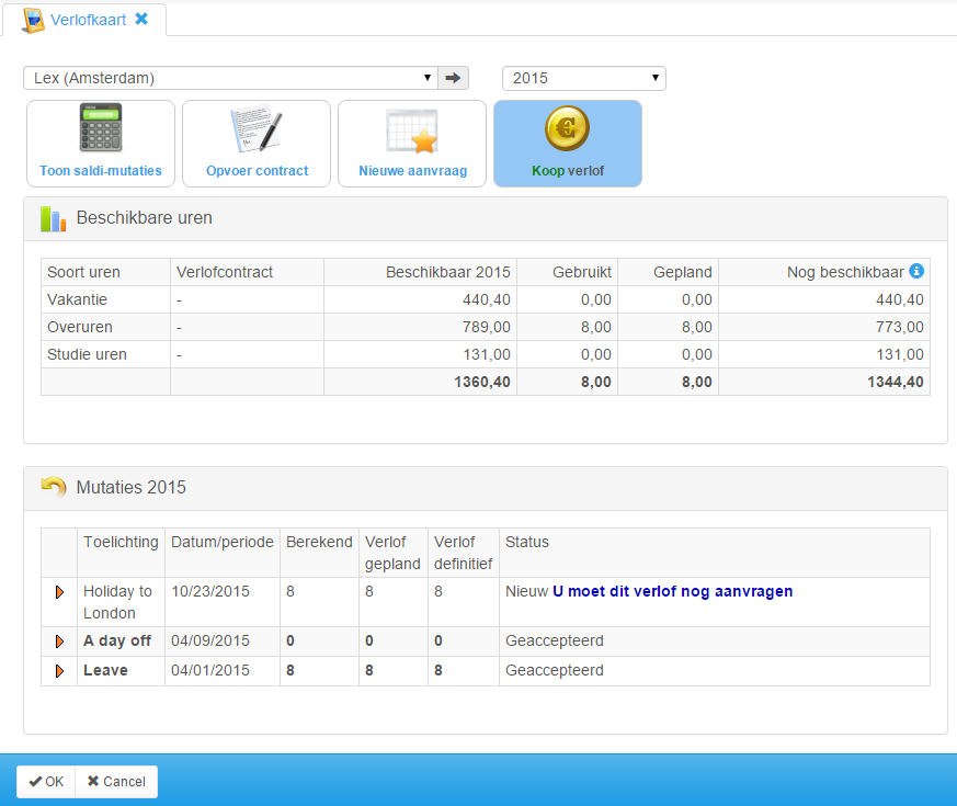 Hierbij kunt u denken aan de verlofuren die eigenlijk omgezet worden in geld. Alle wijzigingen worden geregistreerd en kunnen indien nodig bekeken worden.